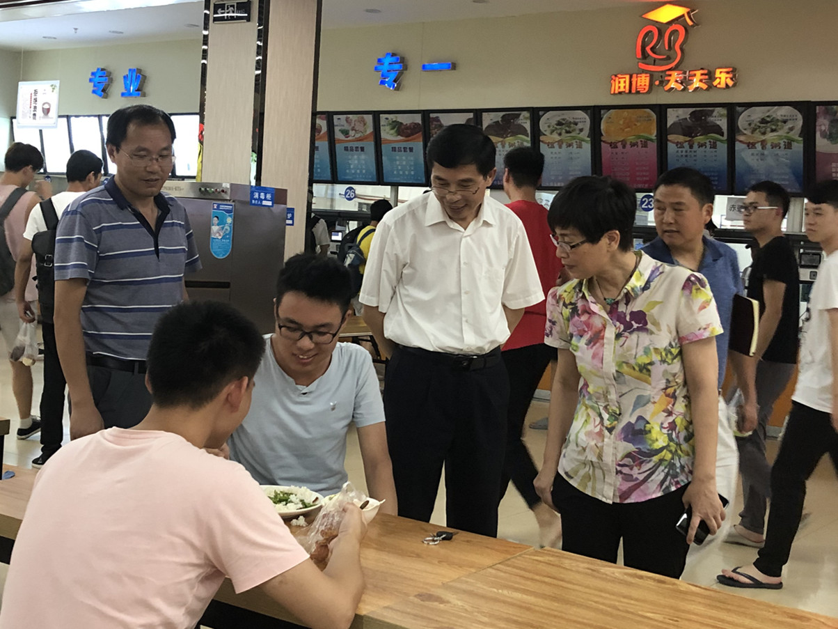 会后,苏国红与各部门负责人现场走访查看了四食堂和五食堂,与就餐同学进行面对面交流谈心,了解餐饮供应及同学们的用餐情况,要求要确保假期饭菜供应充足,确保饮食卫生和安全。