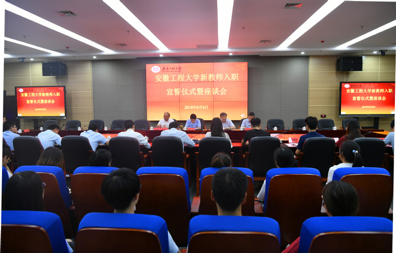 王绍武在致辞中代表学校党委、行政向全体新教师致以诚挚的问候和热烈的欢迎,他介绍了学校发展取得的成绩,对新教师提出了殷切希望:要坚定理想信念,培育道德情操,做一名合格的高校教师;要淬炼扎实学识,致力教学科研,做一名称职的高校教师;要常怀仁爱之心,坚守初心使命,做一名学生喜欢并尊重的教师。希望大家把个人的成长成才与学校的高水平大学建设结合起来,与实现学校第二次党代会确立的目标任务结合起来,共筑安徽工程大学的强校梦。