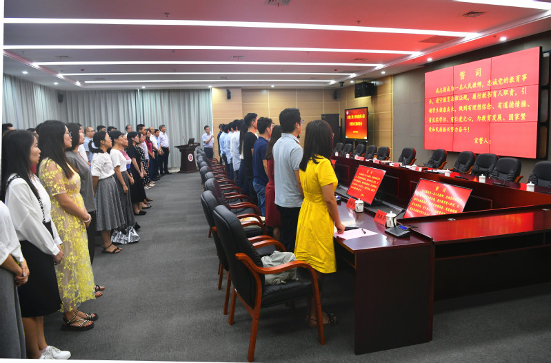 校党委常委、党委教师工作部部长、人事处处长周晓宏带领新教师庄严宣誓。