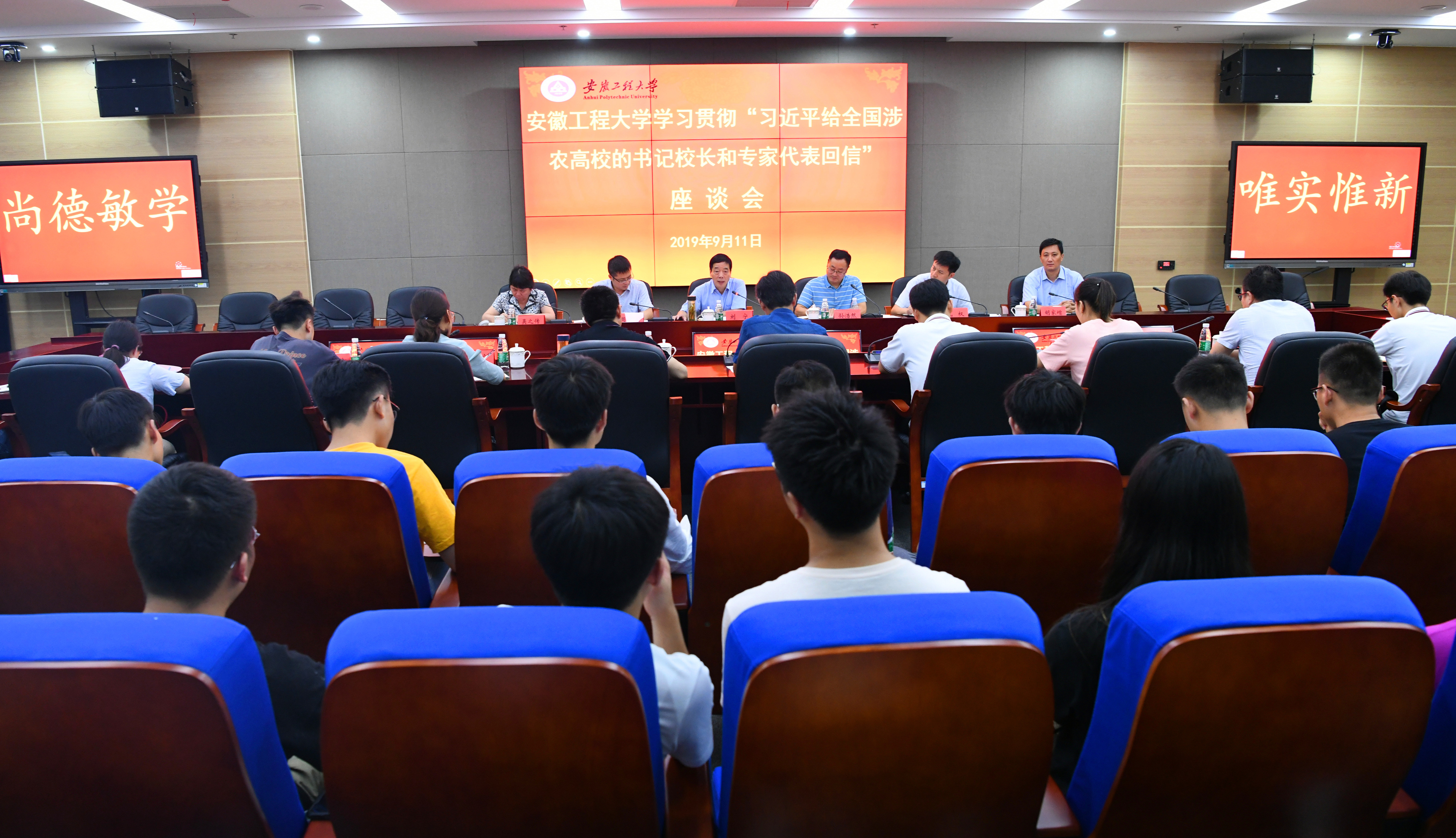 本网讯 习近平给全国涉农高校的书记校长和专家的回信,引起我校师生强烈反响。9月11日下午,学校在图书馆综合楼201会议室举行了学习回信精神的座谈会。校党委书记刘宁,宣传部、人事处(教工部)、教务处、学生处等部门负责人,生化学院党政负责人、食品科学与工程和生物工程专业教师代表,辅导员代表,研究生和本科生代表参加了座谈会,座谈会由校党委常委、宣传部长孙浩然主持。孙浩然在会议开始带领全体师生学习了习近平给全国涉农高校的书记校长和专家代表的回信。