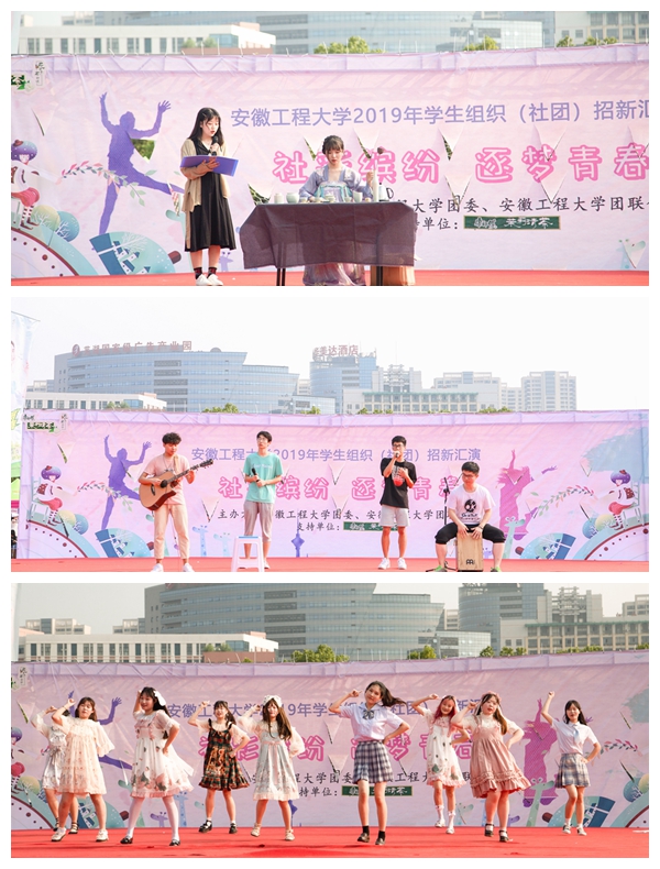 各学生组织、社团结合自身职能与特色,以海报、展板、表演、荣誉墙等方式,展示自身特点与风采,吸引了数千名同学参与。在招新现场还同时举办“2019年学生社团招新汇演”和“第二课堂育人成果展”。学术科技类社团智能车协会展示了新型智能车,刚刚成立不久的单片机与嵌入式协会展示了机器人等科技产品。社会公益类协会暖途青年志愿者服务社等协会以图片的形式展示了社团开展的活动。茶文化协会、爱乐社、拉丁舞协会、街舞协会、武术协会、吉他协会等协会陆续登台,进行了丰富多彩的文艺汇演,展示了青春蓬勃的朝气。