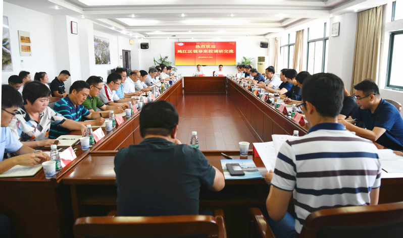 9月16日,鸠江区委书记袁发林,鸠江区委副书记、区长方忠,鸠江区政协主席张再保等一行17人来校调研交流,校领导刘宁、王绍武、费为银、郑健,学校相关部门负责人出席座谈会。