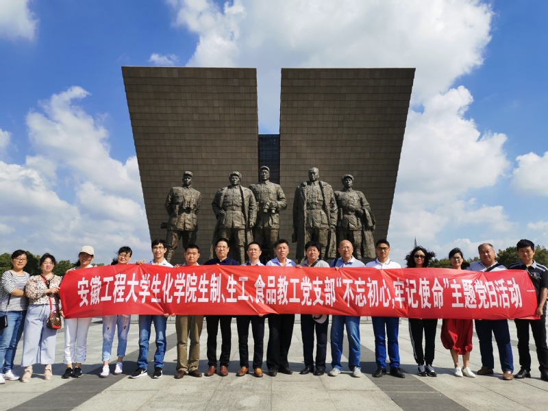 2019是中华人民共和国成立七十周年,也是渡江战役胜利七十周年。为追寻革命先辈光辉事迹,缅怀革命先烈丰功伟绩,9月21日,生化学院生物制药、生物工程和食品工程系的教师党员来到全国爱国主义教育示范基地——合肥渡江战役纪念馆,开展了“不忘初心、牢记使命”的主题党日活动。