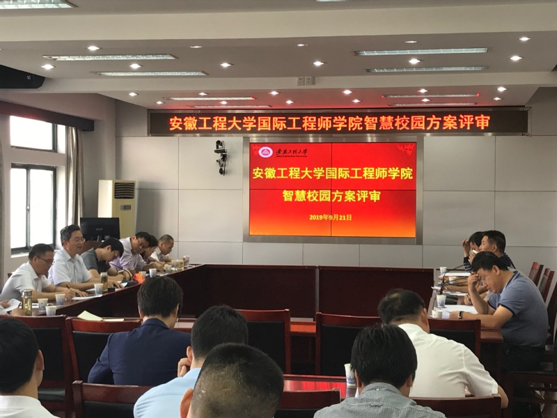 本网讯 9月21日,安徽工程大学国际工程师学院智慧校园建设项目征集方案评审会议在A座1121如期召开。评审会由同济大学建筑设计研究院主任罗颜主持。会议邀请了中国科学技术大学、合肥工业大学、安徽师范大学、合肥师范学院和我校共5位信息化领域专家组成专家评审组,校现代技术中心、图书馆、财务处、保卫处、后勤保障处、建设办、配建办等相关部门领导参加了评审会议。