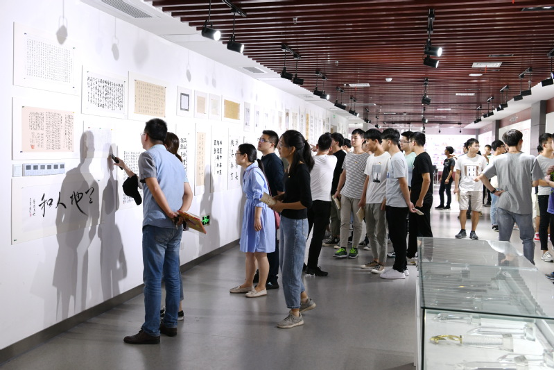 本网讯 不忘初心,砥砺奋进;礼赞祖国,继往开来。为隆重庆祝新中国成立70周年,根据学校《关于做好2019年度宣传表彰系列活动的通知》文件要求,并作为全校庆祝表彰活动之一,宣传部、人事处(教工部)、工会等部门联合举办了庆祝新中国成立70周年书画及摄影展,校领导、相关部门、学院负责人和部分师生观看了展览。