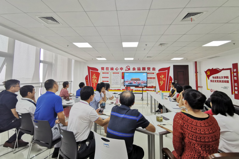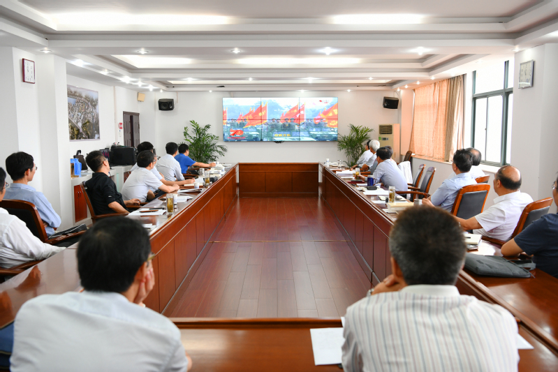 校党委理论学习中心组在完成上午的理论学习任务后,于行政楼1215会议室集中观看盛典。