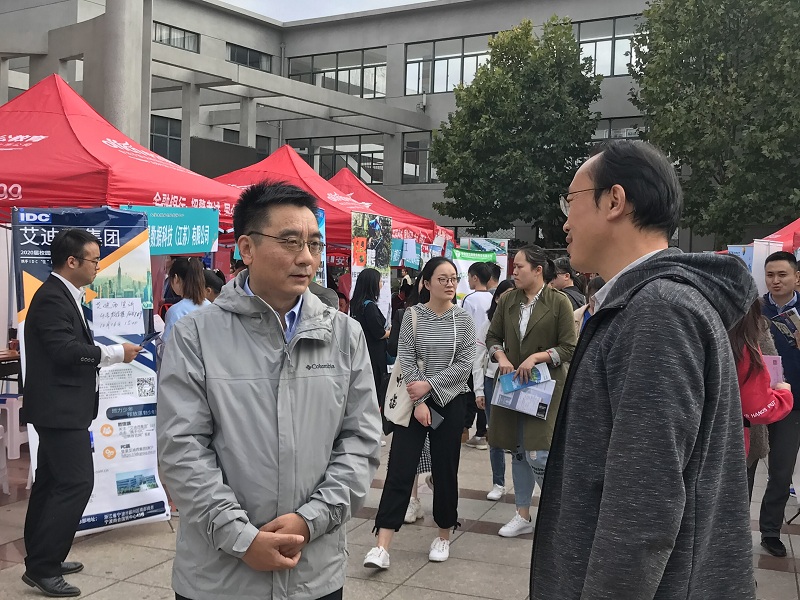 本网讯 10月16日,2019年“江苏招才月”系列引才活动——安徽工程大学专场招聘会在师生活动中心广场成功举办。副校长郑健来到招聘会现场,了解用人单位的需求情况并指导工作。部分学院党委书记、副书记、毕业班辅导员早早到场与企业交流,助力学生成功求职。