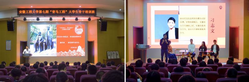 10月19日下午,本期“青马工程”大学生骨干培训班还专门邀请团芜湖市委书记郝代伟以《坚定信心跟党走、青春建功新时代》为题作主题报告。邀请2017届优秀毕业生、现就读于北京大学创业班、南京星麦信息科技有限公司总经理刁志文与校十佳大学生代表等,共同与“青马工程”大学生骨干培训班学员举办大学生成长经验分享沙龙。