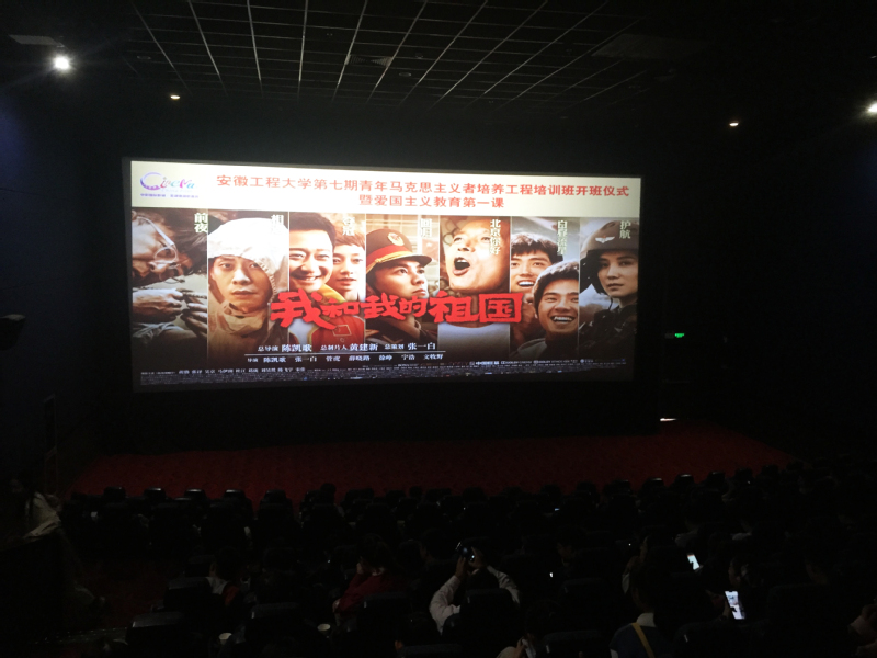 习近平总书记指出,“要在厚植爱国主义情怀上下功夫,让爱国主义精神在学生心中牢牢扎根”。本期“青马工程”大学生骨干培训班学员采取定向培养方式,由2019级新生团支部书记及部分学生组织优秀学生干部构成。开班的第一课将爱国主义教育贯穿于新生的思想政治教育的全过程,点燃青年大学生爱国热情的火炬。观前、现场与观后,“青马工程”大学生骨干培训班学员在不同的时间段分享着不同的感受。机械与汽车工程学院刘传政同学在朋友圈这样说,“我和我的祖国,一刻也不能分割”,影片结束时高昂的歌声直击我的内心深处,我想,不论时光如何洗磨,我爱祖国的心永远不会消退。生物与化学工程学院姚秋阳同学说,爱国是一种本分,更是一种责任;是一份情怀,更是一种行动。欢笑声、呐喊声充斥着影城,却是来自内心最真实的爱国表现。