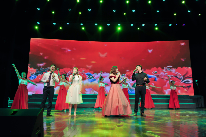 教职工十佳歌手欢快的歌曲串烧《欢歌四起》让现场师生掌声不断,走下讲台、走上舞台,严肃的老师用诙谐幽默的方式告诉大家“爱拼才会赢”。大学生十佳歌手联袂演绎的歌曲《⻘春畅想》,用歌声传递快乐,用音乐激活梦想。一曲《奉献》演绎着“党有号召团有行动”的生动实践和青年大学生对奉献社会的精神追求。