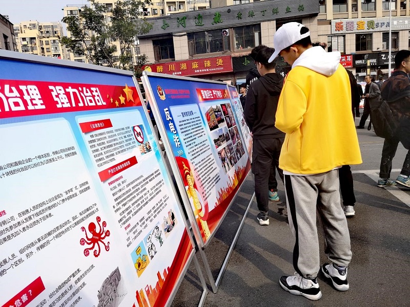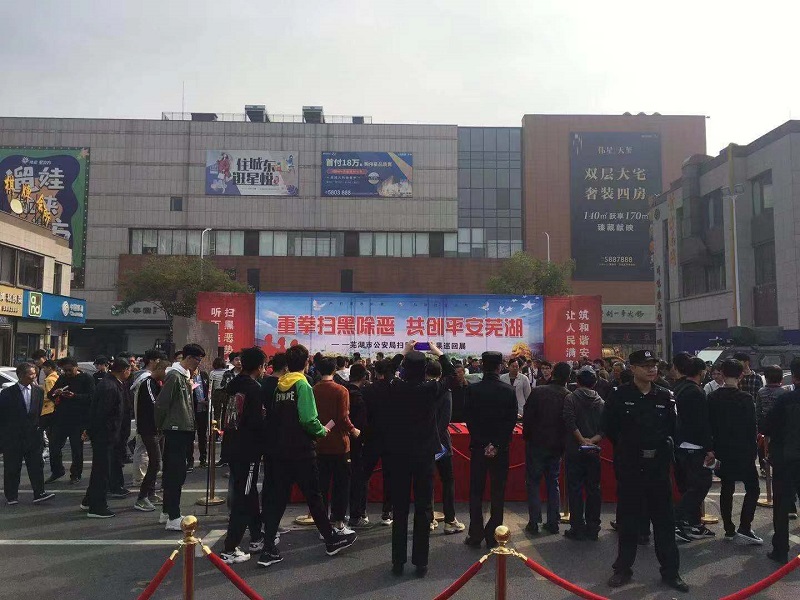 此次展出通过实物展示、展板宣传、视频展播等方式,展现芜湖公安机关扫黑除恶专项斗争重大成果,深入揭露黑恶犯罪的严重危害和犯罪分子的劣迹暴行,号召广大市民和社会各界,共同行动、共同参与,积极检举揭发黑恶线索,共建平安芜湖。