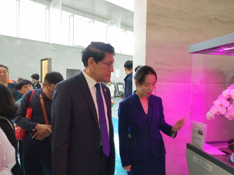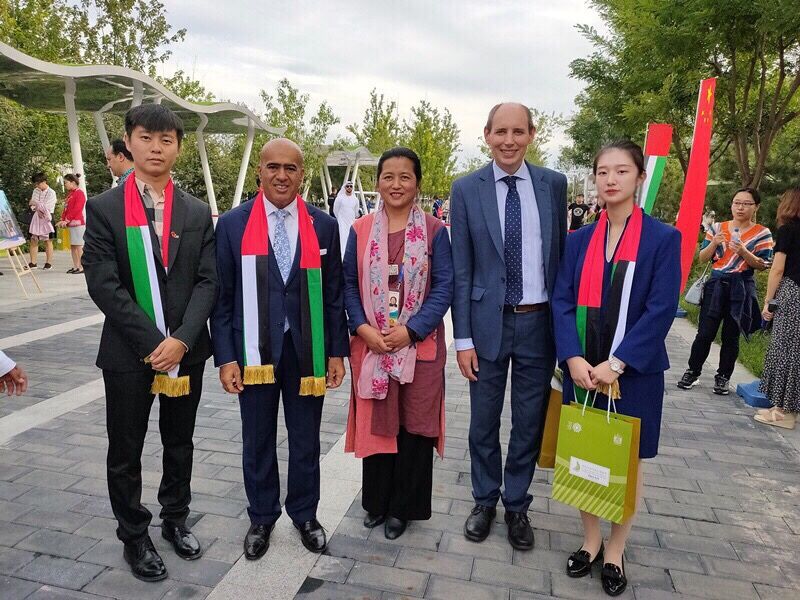 (王慧芸与阿联酋驻华大使阿里•扎希里、世园会阿联酋展区总代表拉希德•努埃米等人合影)