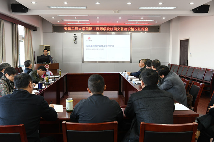 会上,校园文化及校史研究中心主任徐军介绍了考察宁波诺丁汉大学、西交利物浦大学、天津大学国际工程师学院等校园文化建设情况,艺术学院老师刘华玉介绍了我校国际工程师学院校园文化建设的初步设计方案。