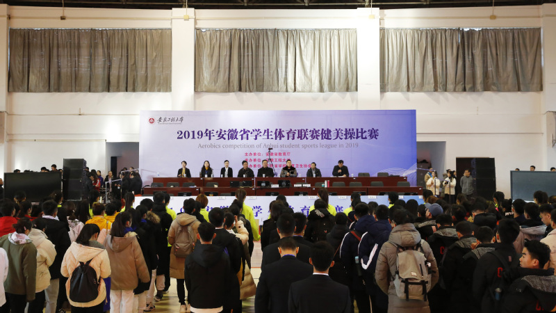 开幕式在庄严的国歌声中拉开序幕。郭兴众致开幕词。作为此次赛事的承办单位,他代表学校对与会人员表示欢迎,对支持学校发展人员致以感谢。他在简要介绍了学校的发展历史、基本情况之后,重点介绍了我校体育学院的创办情况及体育工作开展情况。他指出,我校积极组队参加国家、省级体育赛事,多次获得全国大学生体育舞蹈、健美操、散手及空手道比赛冠军,先后承办全国大学生空手道锦标赛、安徽省大学生篮球联赛等大型赛事,学校在最新发布的“中国高校体育竞赛榜100强”中位居全国第63位。为确保赛事的顺利开展,他希望,各参赛队领队和教练员要强化“文明比赛、安全比赛”意识,加强对队员的安全教育和管理;各位裁判员要本着“公开、公正、公平”的竞赛原则,认真准确地执行裁判工作;全体运动员要坚持“友谊第一、比赛第二”,赛出风格、赛出水平。同时,他代表学校承诺,竭诚为大家做好各项服务,努力为大家创造良好的比赛环境。最后,他预祝本次安徽省学生体育联赛健美操比赛取得圆满成功。