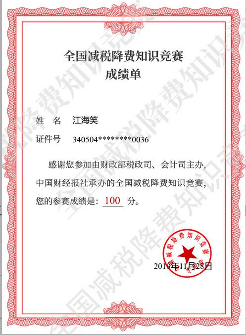 实施更大规模减税降费是党中央、国务院的重大决策部署。为进一步加大减税降费政策宣传力度,普及减税降费知识,落实好减税降费政策,根据《安徽省财政厅转发财政部办公厅关于开展全国减税降费知识竞赛的通知》,我校认真组织师生参与全国减税降费知识竞赛,切实做好减税降费政策的宣传,营造了良好的氛围,彰显了我校党政、全体师生对贯彻落实上级重大决策部署的高度重视和自觉意识。