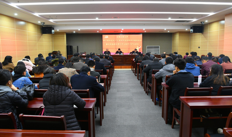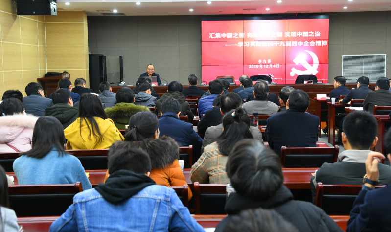 本网讯 为深入学习贯彻党的十九届四中全会精神,12月11日,我校邀请省委宣讲团成员、省委教育工委组干处处长李方泽作党的十九届四中全会精神专题报告。校党委理论学习中心组成员,校纪委委员,学校党的十九届四中全会精神宣讲团成员,马克思主义学院全体教师和师生代表一百多人聆听报告会。报告会由校党委书记刘宁主持。