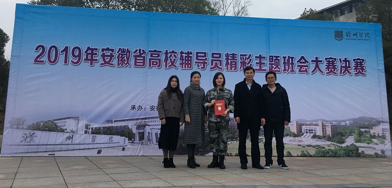 本网讯 12月15日,由中共安徽省委教育工委组织、省教育厅思政处主办、安徽省大学生思想动态分析研究中心(滁州学院)承办的2019年安徽省高校辅导员精彩主题班会大赛决赛,在滁州学院落下帷幕。我校体育学院辅导员黄蓉静的主题班会《国无防不立,民无兵不安》,以分赛场现场主题班会组织情景第一名的成绩,获大赛总决赛一等奖。