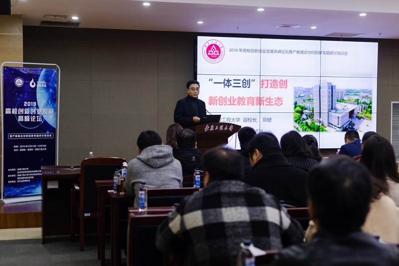 会上,副校长郑健代表学校致欢迎词,并以《“一体三创”打造创新创业教育新生态》为题,从“教创”融合的深入实施、“科创”融合的持续推进和“产创”融合的全面深化三个维度阐述了学校在创新创业工作方面的特色举措。他说,学校不断在“合”上下功夫,将创新创业教育融入人才培养方案,培养具有创新精神和创业意识的高素质应用型人才,实现了专业教育与创新创业教育的有机融合;在“进”上下功夫,推进创新创业教育与科技创新能力一体化建设,创新创业教育生态与区域战略产业生态同构,构建环高校创新创业教育生态圈,实现了科研与创新创业教育有机融合;在“借”上下功夫,强化校政企合作,聚合资源,跨界发展,打通创新创业教育“最后一公里”,实现了产业发展与创新创业教育的有机融合,全面实施创新创业教育人才培养模式改革,打造创新创业教育新生态。