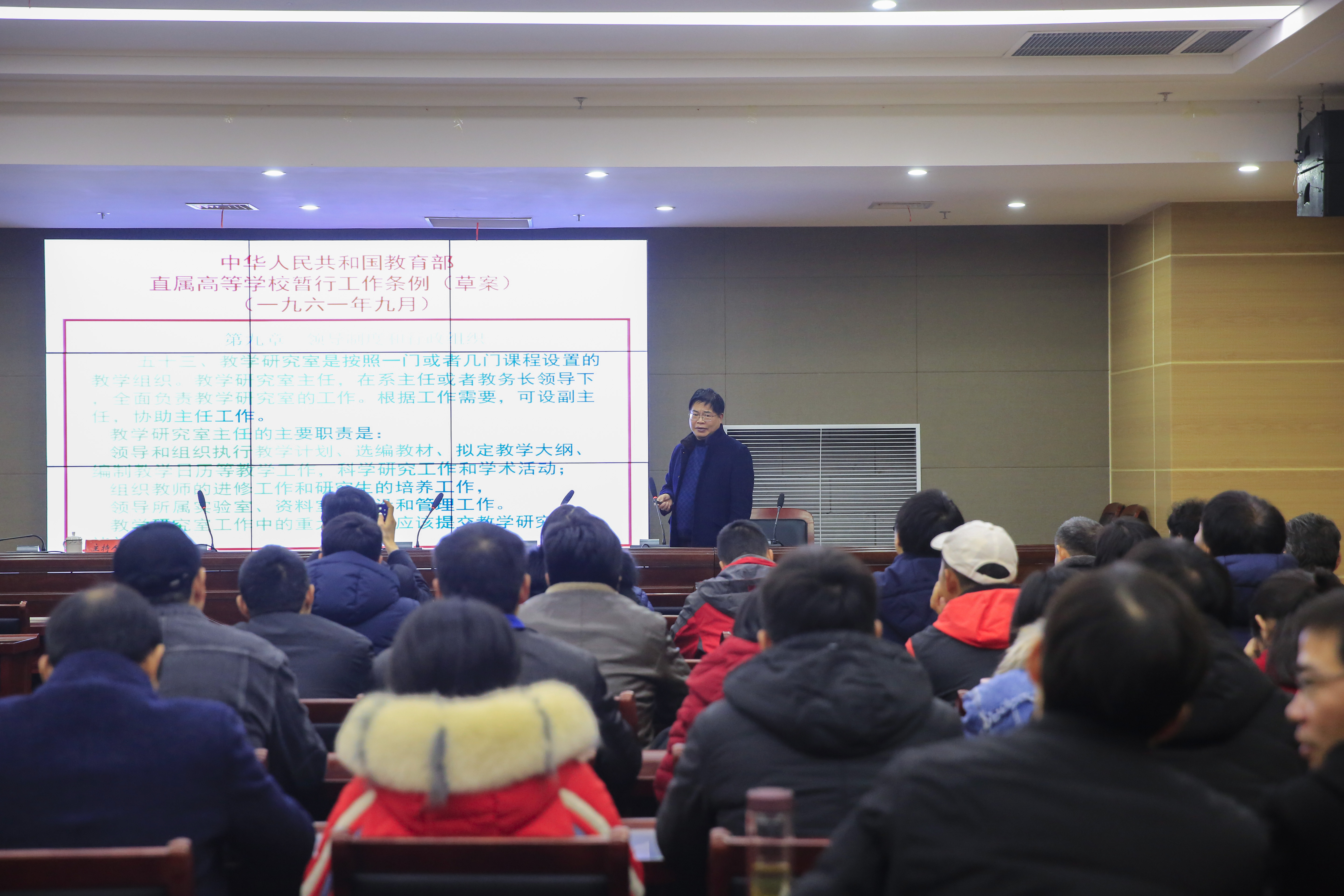 本网讯 为加强基层教学组织达标和示范建设,强化基层教学组织功能,激发基层教学组织活力,12月17日,应学校邀请安徽农业大学发展规划处处长方明教授来校就地方院校基层教学组织的构建及其功能发挥做专题报告。各学院教学副院长、教学秘书、基层教学组织负责人,部分学院院长、相关职能部门负责人以及教务处(教师能力发展中心)相关人员参会。