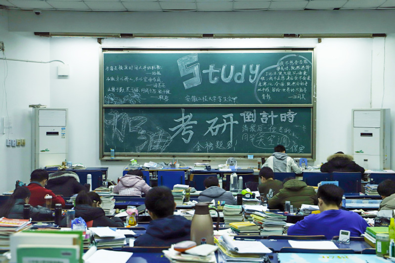 一本本厚厚的复习资料、一页页写满的笔记,承载的是千般思量。考研倒计时,青春不限时,为坚持不懈的考研人永远青春。