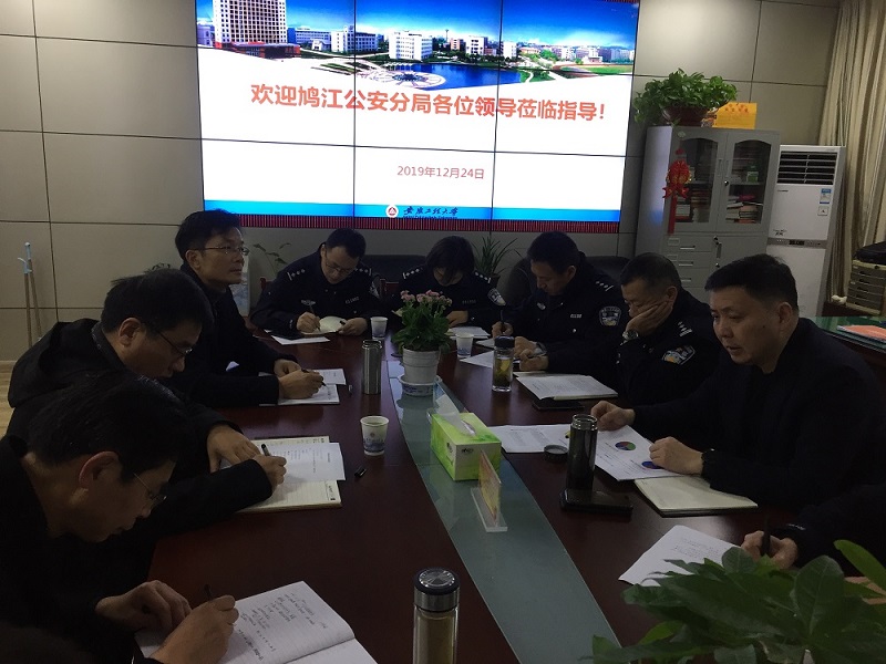 本网讯 12月24日,警校联动会商工作会议在保卫处会议室召开,主要围绕构筑防范电信网络诈骗宣传教育体系进行会商,校党委常委、副校长郑健出席会议,市公安局鸠江分局局长尹兵、副局长周昆,城东新区派出所所长钱增强、副所长杨庆,分局有关科室人员及校园警务室驻点民警,保卫处、学生处、校团委等部门负责人参加会议。
