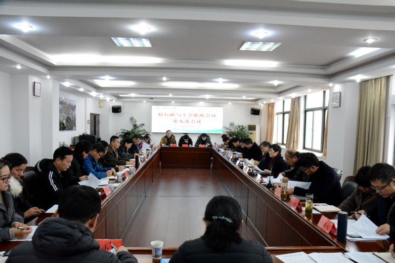 本网讯 1月2日下午,校行政与工会联席会议第九次会议在行政楼1215会议室召开。校领导王绍武、苏国红、郭兴众、费为银、郑健,校工会委员会委员,相关职能部门负责人参加会议,5名博士教师代表列席会议。会议由校党委副书记苏国红主持。