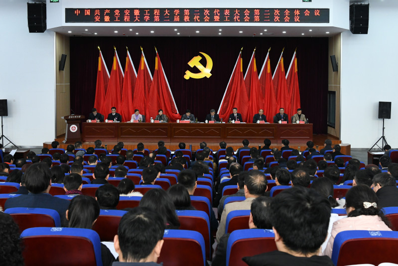 16:20分,大会闭幕式在图书综合楼5楼报告厅举行。会议表决通过了《中共安徽工程大学第二次代表大会第二次全体会议决议(草案)》和《安徽工程大学第二届教代会暨工代会第二次会议决议(草案)》。