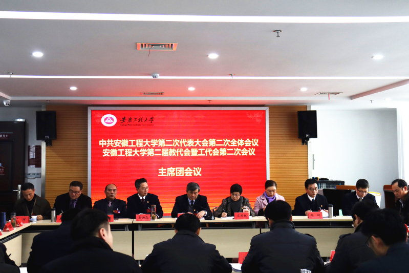 本网讯 1月12日,中共安徽工程大学第二次代表大会第二次全体会议、安徽工程大学第二届教代会暨工代会第二次会议在图书综合楼5楼报告厅召开。校党政领导刘宁、王绍武、苏国红、郭兴众、王红月、费为银、郑健,全体党代会代表,全体教代会、工代会代表,以及相关列席人员参加会议。