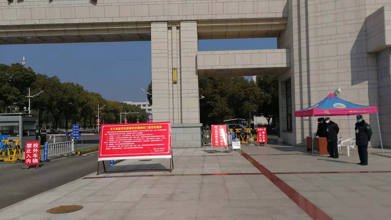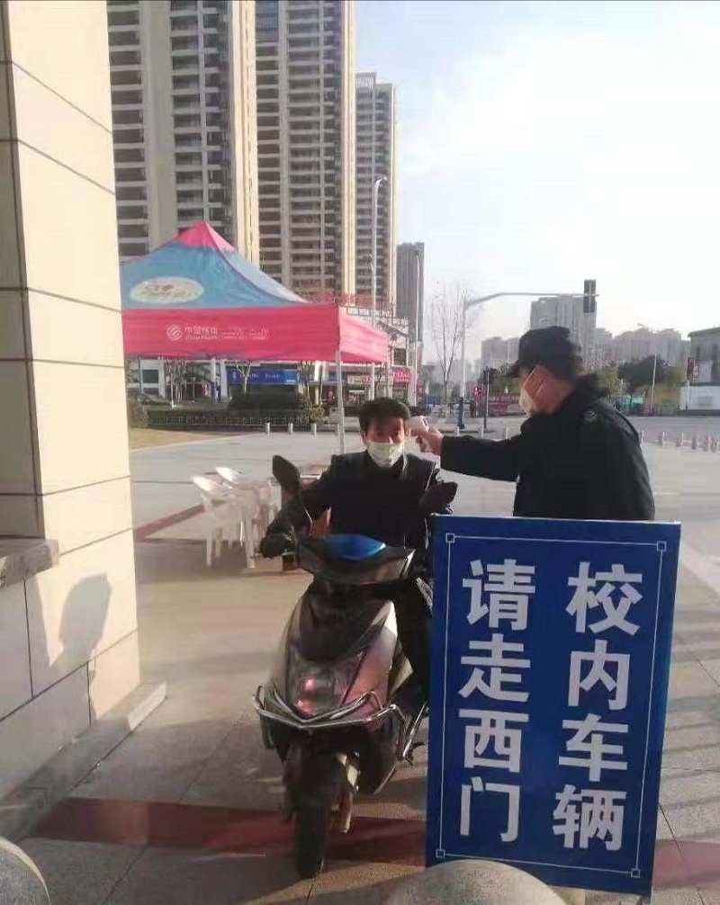 加强协调联动,保卫处党支部筑牢校园安全管控防线。战斗“集结号”吹响后,机关党委保卫处党支部坚决贯彻落实学校疫情防控工作领导小组部署,保卫处党支部制定周密的疫情防控方案,明确防控工作目标,确立防控工作原则,压实防控工作责任,细化校园安全防控措施,从门岗管理到校园管理,从适时监控到重点监控,从车辆管理到人员管理,扎实做好各项安全防控工作。根据疫情发展,关闭学校南一门、大北门、小北门,学校人员和车辆均由南大门及西门出入,严格门卫管理,按照“零遗漏”的要求,值班人员对进入校园车辆和人员严格查验,无有效证件者、体温异常者、拒绝查验者严禁入校,对在校租房居住、经营、施工人员办理临时通行证。强化学校大门管控和校园巡逻巡查,加强协调联动,筑牢校园安全管控防线,坚决防范疫情输入,维护校园安全稳定。