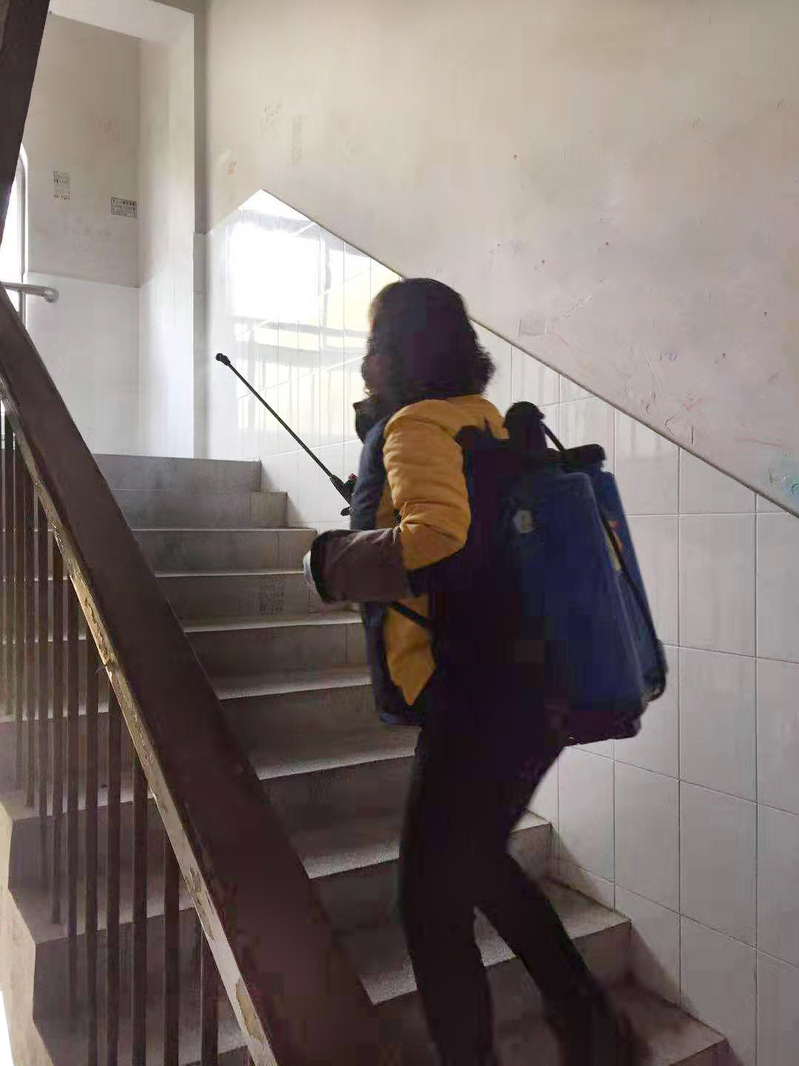 (第一支部党员在消毒检查)