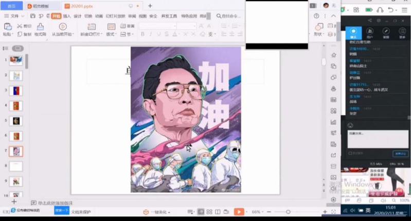 在这个各自“宅”在家里的特殊时期,同学们看着屏幕上的认真教学的老师,隔着屏幕也能真切感受到老师的用心与关心。人力172傅君读懂了老师们“转型”的秘诀,她说:“我知道,每个45分钟的从容直播,背后都是无数个45分钟的默默付出。我们不能只在弹幕上说一句‘谢谢你,老师!’,更要认真学习,认真领会。”广告191 李晓冬说:“老师将授课内容与此次疫情相结合,一张张海报让我们直观了解了视觉传达的内涵,更感受到了中国必胜的决心!”法学191崔文杰十分想念校园,她希望疫情尽快结束,她说:“春天到了,樱花也快开了,那时候去武大看樱花的人一定比花还要多!”