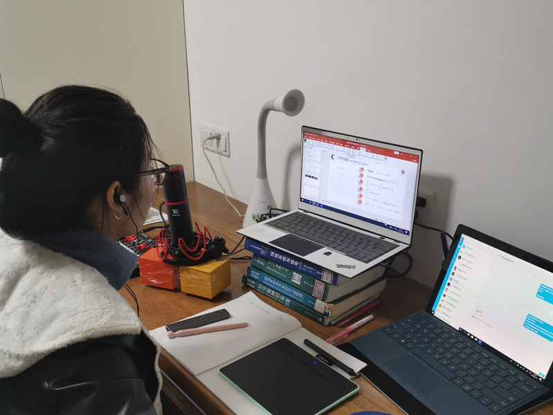 学习通、QQ群、雨课堂多管齐下,有效解决高数课的逻辑演算问题。数理学院项立群老师,面临的第一个难题是:如何将高等数学课程的逻辑演算一步一步呈现给学生。为此,他做足了准备,电子教材、PPT课件、习题资料(单数序号题目配解答,双数序号题目供练习)……在他的课堂上,学习通、QQ群、雨课堂三管齐下,学习通提供课件、学习资料、视频;QQ群上传资料、互动答疑;雨课堂签到、直播、评点、回看。学生们可以通过电子书与直播课件分屏观看,再辅以音频、弹幕、白板、图片等,顺利完成课程学习。对个别未能及时加入在线课堂的学生,项老师及时提醒、逐一帮助指导,对教学班整体积极引导。课后,项老师不忘叮嘱学生,好好利用“宅”在家里的时间,多读几本好书、多学做几个菜,多陪家长聊聊天。