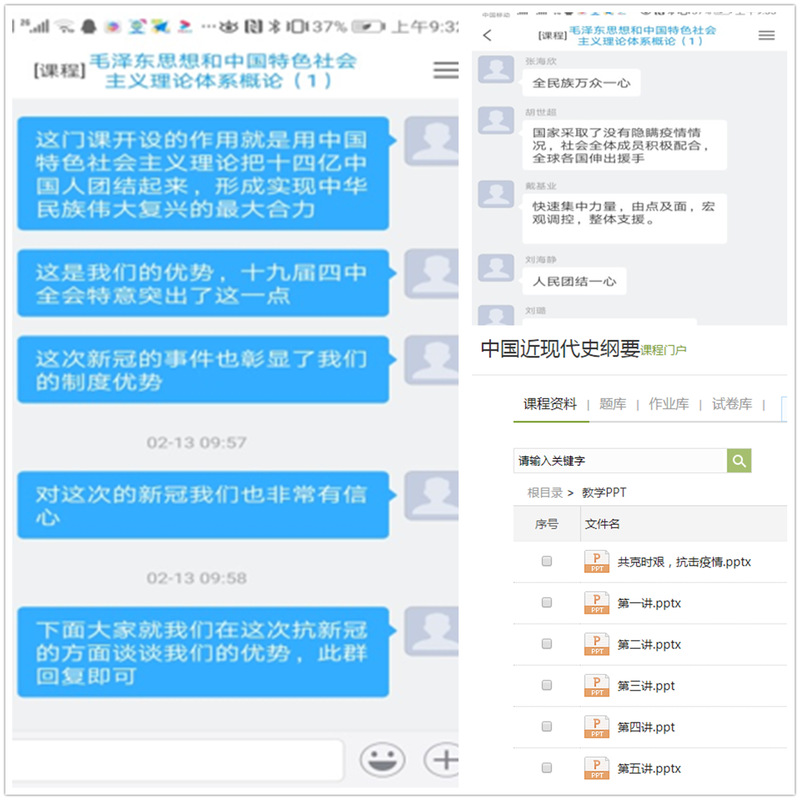 本网讯 在举国上下万众一心抗击新冠肺炎疫情的关键时期,马克思主义学院积极响应上级“延期不延教,停课不停学”的号召,因事而化、因时而进、因势而新,加强网络线上教学实践探索,努力发挥思政课作为落实立德树人根本任务关键课程的作用,凝聚抗击疫情的强大精神动力。
