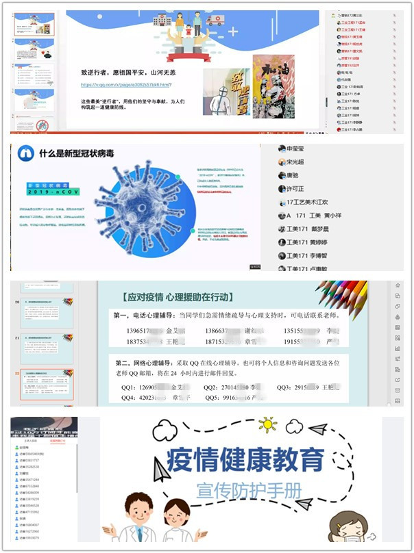 热情做好关心帮扶。针对不同年级的学生提供针对性指导。计算机学院毕业班辅导员对学生就业、考研初试成绩查询、复试及调剂准备等方面主动发声,积极回应,细致工作;电气学院辅导员针对返校、学业、等级考试、补考、创业等学生关心关注的热点问题,引导学生响应党和国家的号召,积极配合当地防疫部门和学校的工作,做好自主学习,“停课不停学、学习不延期”。外国语学院动员老生带新生、党员带团员,针对尚处于大学适应期的新生开展了对口抗“疫”行动,筑牢新生抗疫防护网。