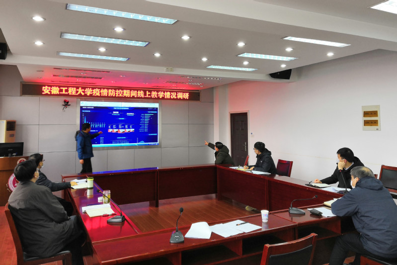 会上,教务处处长凤权就我校线上教学前期准备、课程安排、质量监控、技术保障、教师的培训和开课建课、学生在线学习情况及存在的问题进行了汇报,现代技术中心副主任陈阳就网络教学平台运营情况进行了汇报。校领导通过学校网络教学实时监控系统对线上教学整体情况进行了检查,并详细询问了线上教学的技术保障、功能运用、师生动态以及运行过程,随机调取了部分教师线上授课的实况。