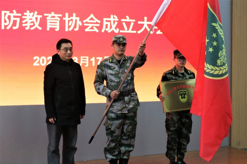 会上,校团委书记郭广春宣读了国防教育协会成立的批复文件,首任会长王圣宣读了协会章程和组织分工,郑健向国防教育协会授旗授牌。