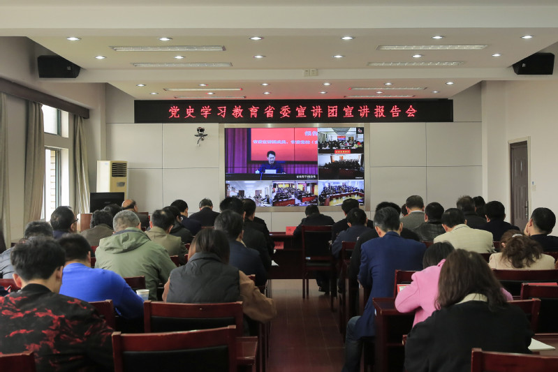 本网讯 根据省委统一部署,4月6日,省委教育工委、省教育厅举办党史学习教育省委宣讲团宣讲报告会。省委宣讲团成员、省委党校(安徽行政学院)党史党建教研部主任郝欣富教授作宣讲报告,省委教育工委书记钱桂仑主持。我校在A座1121会议室设视频分会场,校党政领导刘宁、苏国红、郭兴众、费为银、郑健,党委职能部门主要负责人,各二级党组织书记,思想政治理论课教师、辅导员、学生代表参加报告会。
