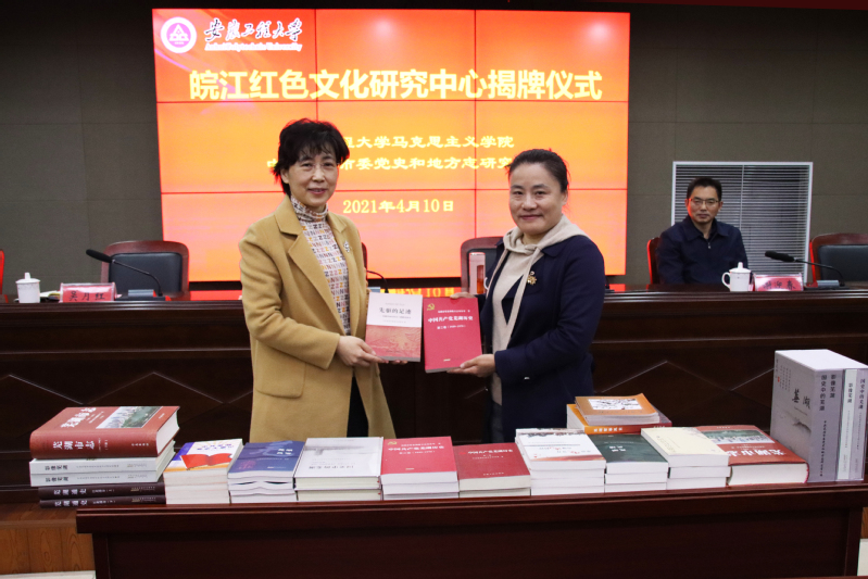 会上,孙浩然和刘萍共同为“皖江红色文化研究中心”揭牌,吴月红与刘萍分别代表双方单位签订了《皖江红色文化研究中心合作共建协议书》和《党支部共建协议》,刘萍代表市委党史和地方志研究室向皖江红色文化研究中心赠书。马克思主义学院副院长李海涛汇报了皖江红色文化研究中心筹备工作。