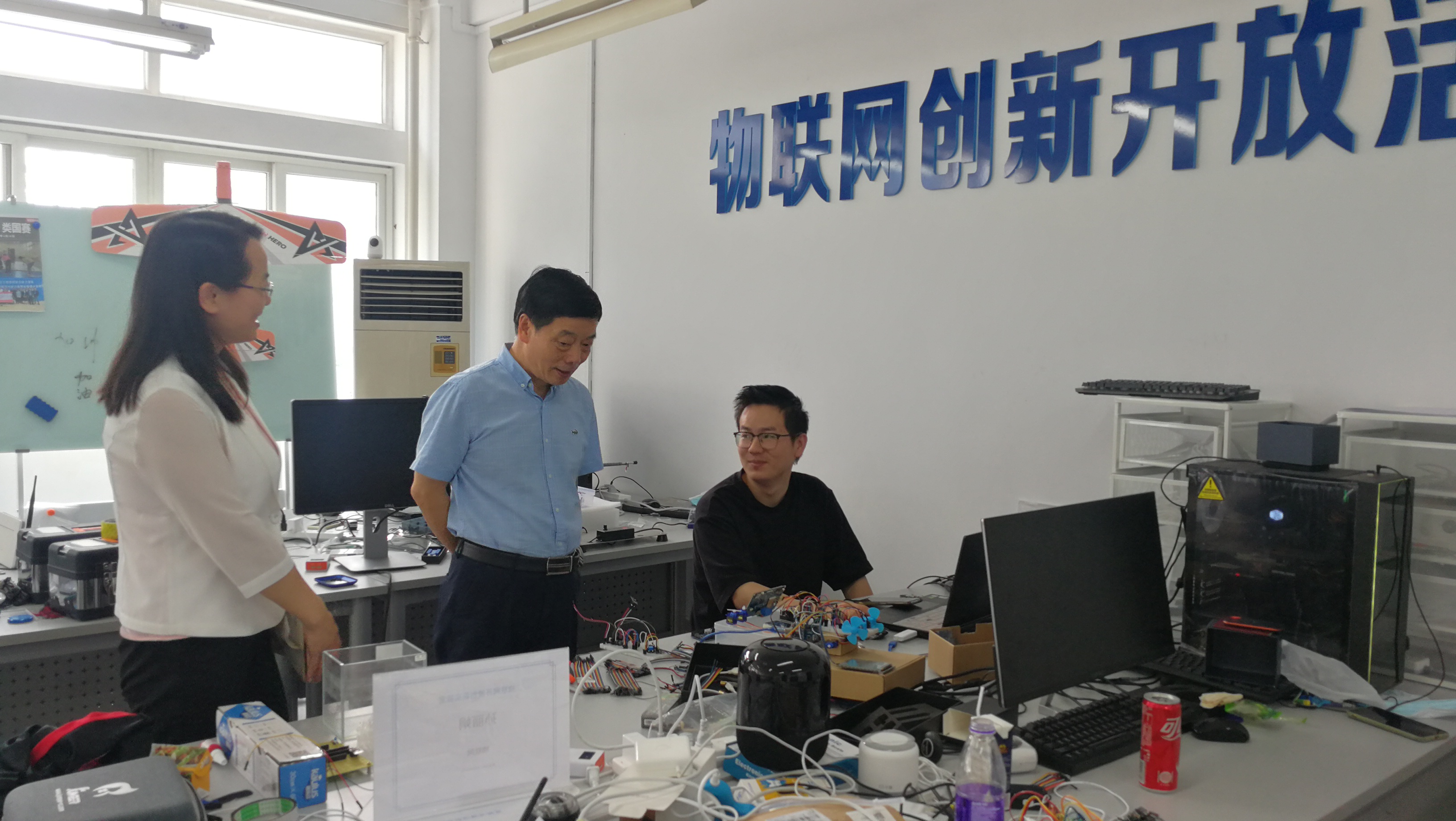 刘宁对B座六楼的创新创业教育中心进行了现场考查,走访了8个创新开放活动室和综合活动室,并与正在工作的学生进行了亲切交谈。在智能车创新开放活动室,他查看了实验场地,了解了智能车的制作、研发等情况;在物联网创新开放活动室,他与活动室开展创业项目的学生进行交流,详细了解了该生创业企业地点、企业产品等情况,勉励学生踏实肯干,不断开拓创新,并表示支持我校学生开展以科技创新为基础的创业。刘宁肯定了计算机与信息学院创新创业教育工作取得的实效,就场地、校院联动机制等问题给出了建议。