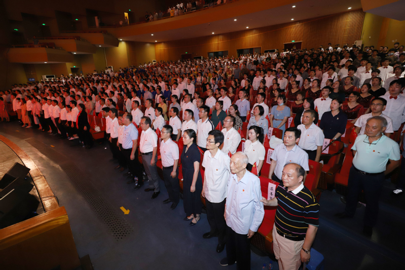 本网讯 6月30日,我校在芜湖大剧院举行庆祝中国共产党成立100周年“七一”表彰大会暨师生歌咏比赛。校领导刘宁、苏国红、郭兴众、费为银、郑健,校党委常委孙浩然、王弘、周晓宏等出席活动并为受表彰代表颁奖,各二级党组织主要负责人、受表彰师生代表、19个二级党组织师生代表共计1600余人参加活动。