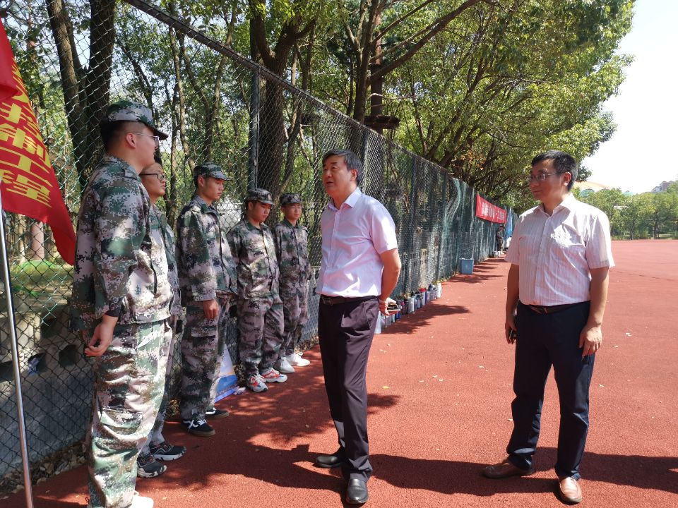 本网讯 9月22日,学校党委副书记、校长王绍武,党委常委、副校长郑健深入新生军训场地指导检查军训工作,看望参训新生,并亲切慰问了军训现场的教官和新生辅导员。