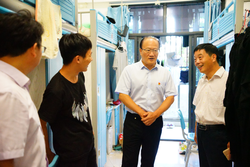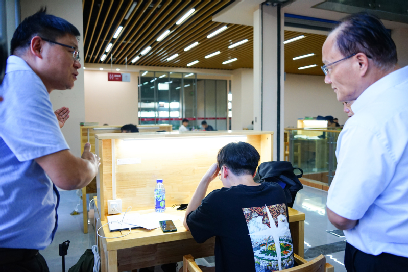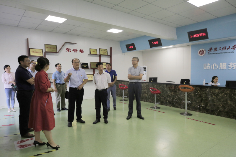 在督导过程中,刘新跃强调,学习宣传贯彻习近平总书记“七一”重要讲话精神是当前首要政治任务,学校要紧紧抓住这个重点,引导广大师生把思想和行动统一到讲话精神上来。他对我校“我为师生办实事”情况给予肯定。他赞赏后勤服务大厅“线上下单”模式,减少了记录、安排、等待等中间环节,实现了维修工人与报修师生的无缝对接;他指出,在图文信息中心挑高区域自修桌上安装单控日光灯管和磨砂玻璃隔断有效解决了照明强度不足问题,在71间教室安装多联机空调切实缓解了教室上课的闷热现状,为学生创造了良好的学习氛围。他希望学校认真贯彻中央党史学习教育领导小组《关于深入推进“我为群众办实事”实践活动的通知》精神,对照“我为师生办实事”实践活动项目清单,深入基层一线,了解师生需求,对“急难愁盼”问题精准发力,把好事办实、实事办好,让广大师生员工深切感受到党史学习教育带来的实惠,不断增强广大师生的幸福感、获得感。