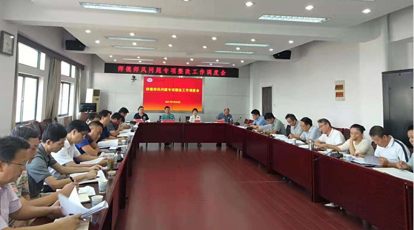 本网讯 9月25日下午,学校在行政楼1121会议室召开师德师风问题专项整改工作调度会,部署和推进省委巡视“回头看”反馈师德师风问题,校领导苏国红、王红月、费为银,相关职能部门负责人和各学院党政主要负责人参加会议。会议由校党委书记刘宁主持。