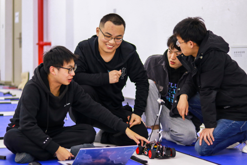 深夜11点的国际工程学院龙胜楼507实验室热火朝天,他们有的围在电脑前查看代码,有的蹲坐在地上调试车辆,这是电子科技协会的同学们正在为“全国大学生智能车竞赛”做准备。他们已经训练了近半年时间了,放弃节假日及休息时间投入训练,晚自习后去协会练习到十一点多,这些都是家常便饭。自动化204武云飞是平衡单车组的一员,他说:“电子科技协会到我们这里已经是第43届了,一届届学子传承着协会的技术与精神,不断从学长那里继承并改进他们的算法,也学习他们永不言弃的意志品质。学校严格管控期间,少了外界的诱惑,心也更静了,希望今年能取得更好的成绩!”电气工程学院实验中心系教师邱意敏说,目前存在两地办学困难和疫情的影响,但是备战还是按照计划有条不紊地进行着,学生拼搏的精神让自己很感动,希望同学们多参加学科竞赛,激发学习内生动力,提升专业素养。