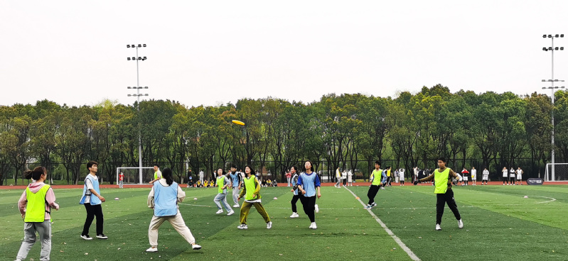 除校园广场舞外,学校和学院利用周末时间组织了丰富多彩的文体活动,“校园秀课”音乐体验、读书分享、“乐跑”打卡等活动精彩纷呈,其中飞盘大赛颇受欢迎,极限飞盘上手门槛不高,只需要一个飞盘、一片户外的空旷场地、两三个人就足以进行,是同学们在疫情之下找寻户外运动乐趣的极佳选择。