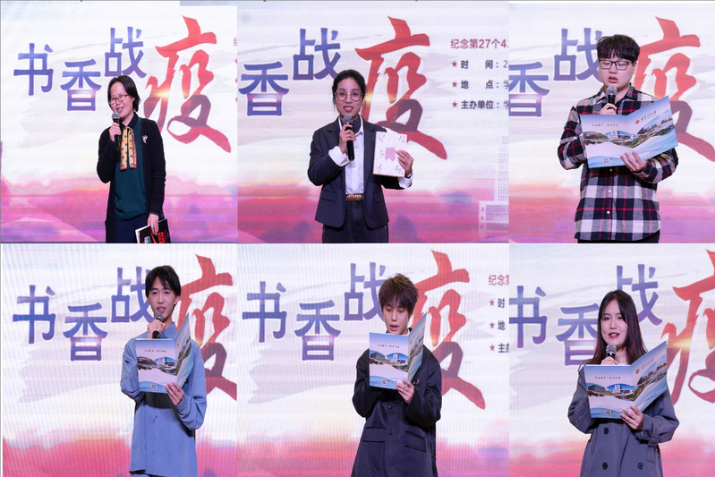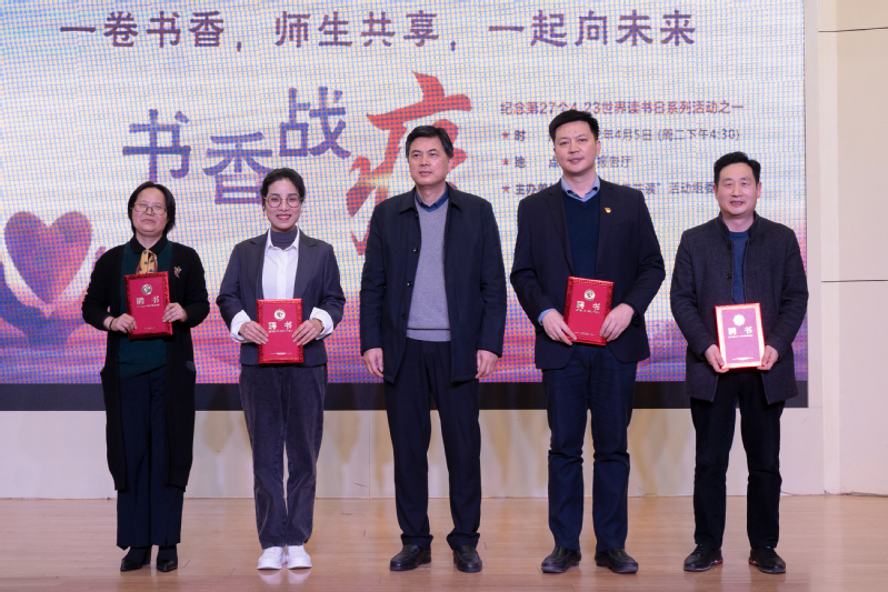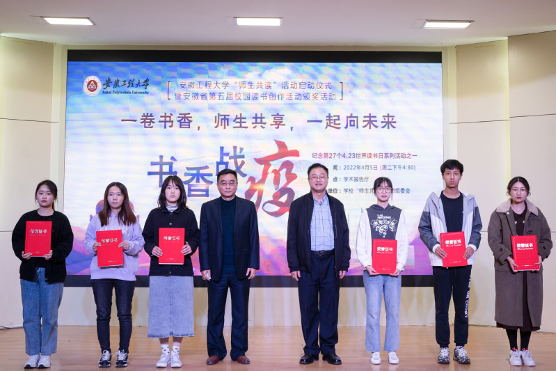 活动现场,张志宏为校级领读人代表颁发聘书。叶常林、郑健为安徽省第五届校园读书创作活动主题征文比赛一等奖、二等奖获得者颁奖;校党委常委、宣传部部长孙浩然,图书馆馆长王忠群分别为安徽省第五届校园读书创作活动短视频获奖团队代表苏醒、安徽省第五届校园读书创作活动优秀指导教师查桂义颁奖。丁文霞、袁一鸣等6位领读人分别就《战疫诗歌精选》《你好,钟南山》《泥泞》《做一个战士》等作品进行领读。活动在《书香战“疫”》宣传片中结束。