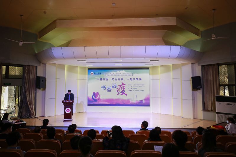 张志宏在致辞中指出,倡导全民阅读已经九次写入两会《政府工作报告》,全民阅读已上升到国家战略高度,打造书香校园、推动全民阅读是大学校园文化建设不可或缺的一部分,也是共促师生成长、共创精神家园的主要途径。他表示,我校大学生向来注重阅读,雨耕讲坛、经典阅读班、普通话大赛等各具特色的阅读活动深入人心,本次“师生共读”活动在当前高校疫情防控异常严峻的形势下举办更是具有特殊意义。他希望同学们用经典武装自己,用朗朗书声驱散疫情阴霾,用爱与责任构筑起一道携手抗击疫情、保卫师生健康的坚固长城,通过“师生共读”活动,坚定信念,汲取知识,以学养人,厚植家国情怀,成为道德修养与文化素养全面发展的人才,做新时代好青年,一起向未来!