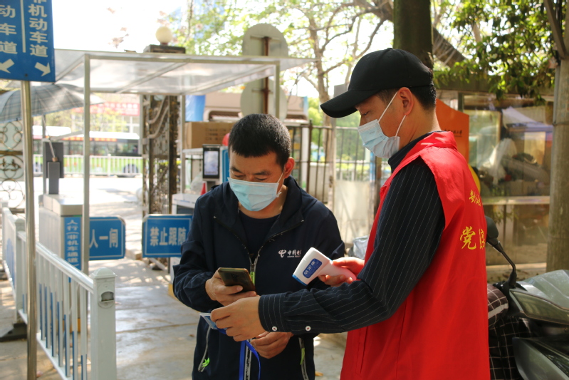 “请佩戴口罩,并出示您的行程码和安康码……”国际处的李悦老师正在进行扫码核验督查工作,她不厌其烦地提醒进校教职工出示健康码和行程码、佩戴口罩,并为其测量体温,做到逢进必扫码、逢进必查验,不得以亮码或截图代替扫码,确保不漏一人。李悦说:“学校西门这边有很多老人,我通过和他们聊天、唠家常的方式普及防疫知识……看见老人们亲切地和我打招呼,表达着对我的关心时,我的内心充满了幸福感与获得感!”