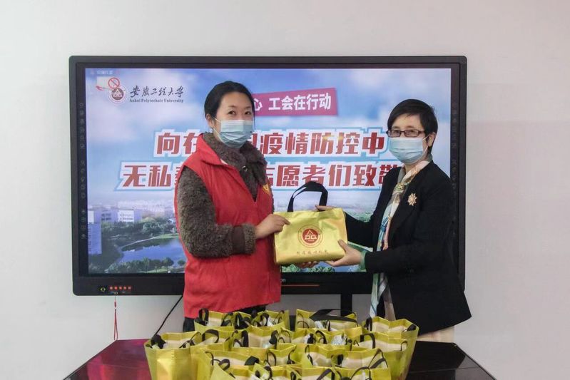 会上,苏国红为校本部和国际工程师学院的一线志愿者代表送上“抗疫暖心礼包”,向为抗疫无私奉献的志愿者们表示敬意和慰问。