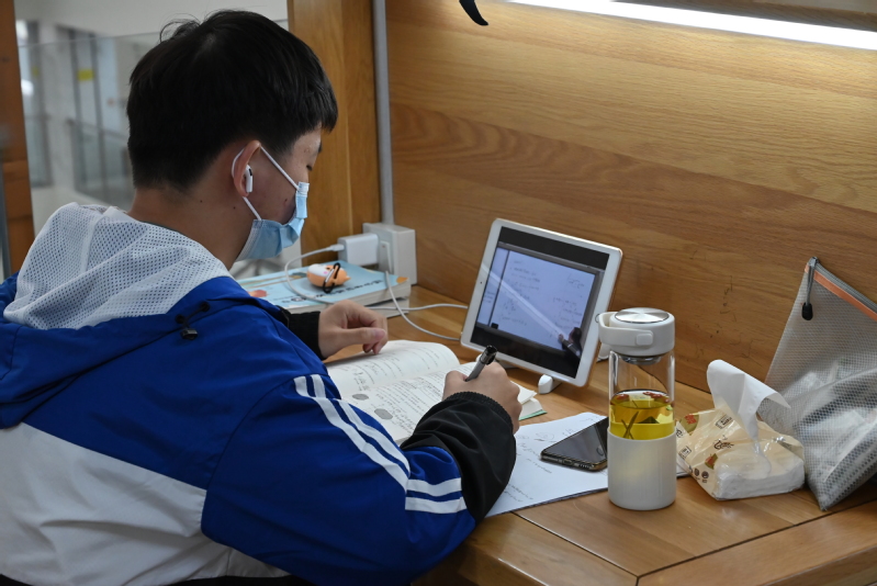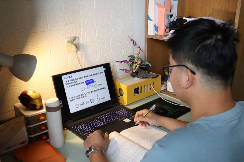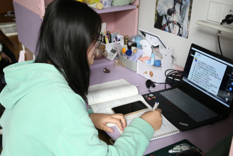 (学生在宿舍上网课)